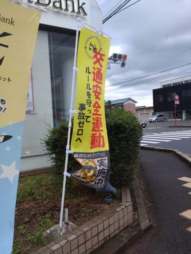 春の交通安全運動に引き続き、轟建設本社近くの交差点にて、通勤・通学の時間に合わせて街頭啓発活動を行いました。