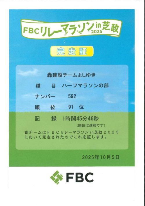 10/5(日)、FBCリレーマラソンin芝政に、参加しました。