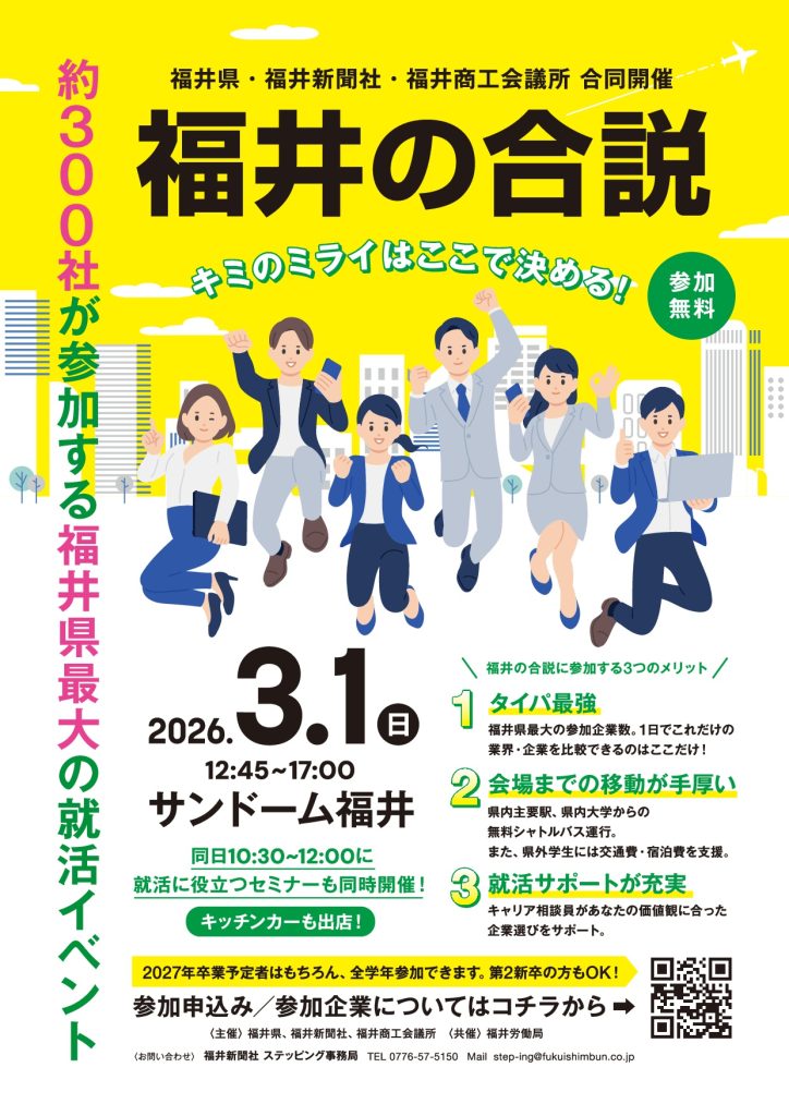 サンドーム福井で開催される 福井の合説に、轟建設も出展します! 日時:2026.3.1(日)12:45~17:00 轟建設ってどんな会社?と少しでも興味がありましたら、 是非、轟建設のブースへお越しください! キッチンカーも出店するそうです! 気軽にお越しください! 轟建設ブースにてお待ちしております!!